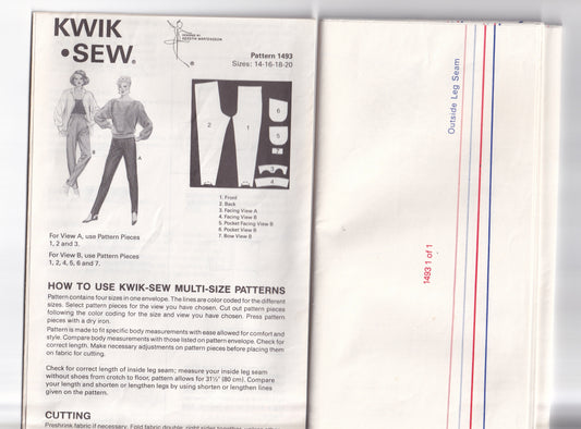 Kwik Sew 1493 Womens Stretch Knit Stirrup Pants & Tapered Pants 1980s Vintage Paper Sewing Pattern Waist 29 - 35 Inches UNCUT Factory Folded