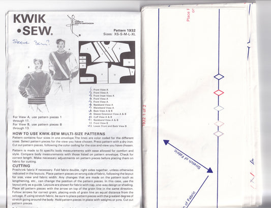 Suéteres de manga murciélago con bloques de color elásticos para mujer Kwik Sew 1932 Patrón de costura vintage de los años 80 Tallas XS a XL SIN CORTAR Doblado de fábrica