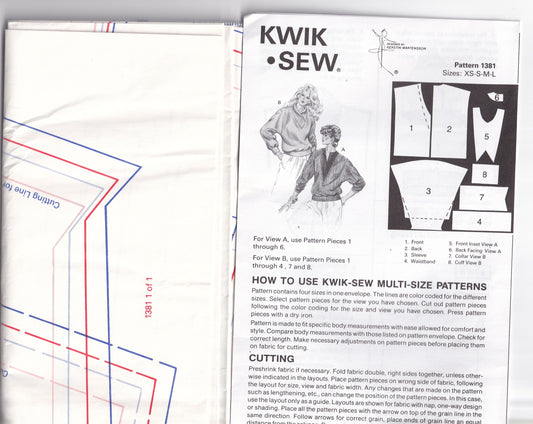 Kwik Sew 1381 Womens Stretch Knit Dropped Shoulder Pullover Sweaters with Front Collar Inset 1980s Vintage Paper Sewing Pattern Size XS - L UNCUT Factory Folded