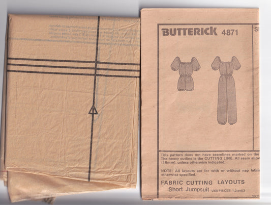 Butterick 4871 Womens Square Neck Puffy Leg Jumpsuit & Rompers 1980s Vintage Paper Sewing Pattern Size 14 - 18