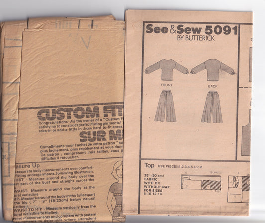Butterick See & Sew 5091 Womens Pullover Top & Wide Leg Culottes 1980s Vintage Paper Sewing Pattern Size 8 - 16 UNCUT Factory Folded
