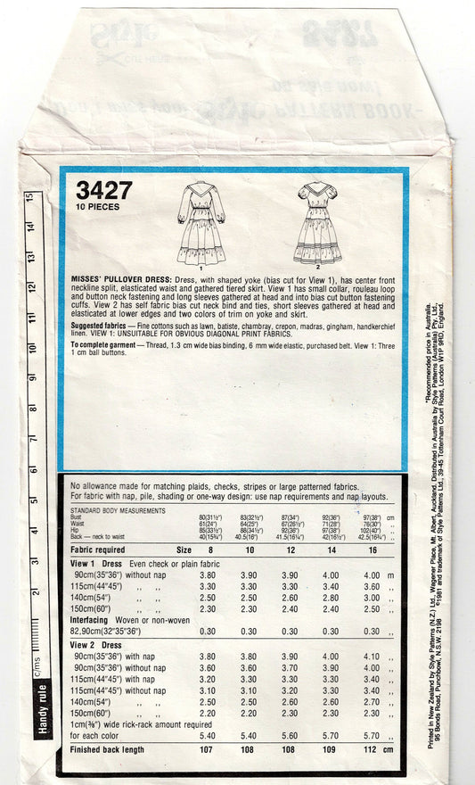 Style 3431 Womens Yoked Tiered Peasant Dress 1980s Vintage Sewing Pattern Size 8 Bust 31.5 Inches