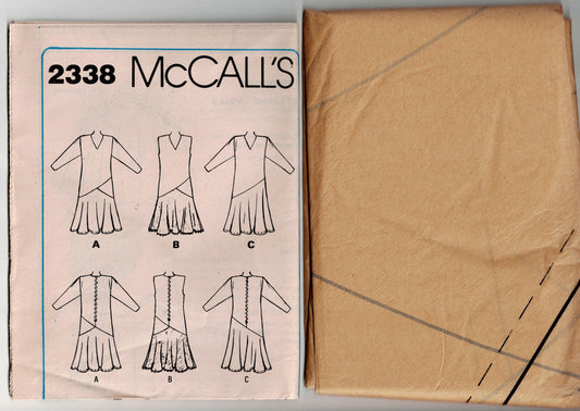 McCall's 2338 Womens Flared Hem Dress 1980s Vintage Sewing Pattern Size 16 Bust 38 inches UNCUT Factory Folded