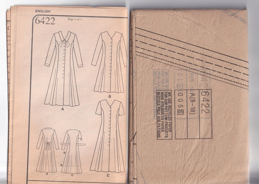 New Look 6422 Womens Classic Princess Dress with Waist Ties 1990s Vintage Sewing Pattern Size 8 - 18 UNCUT Factory Folded