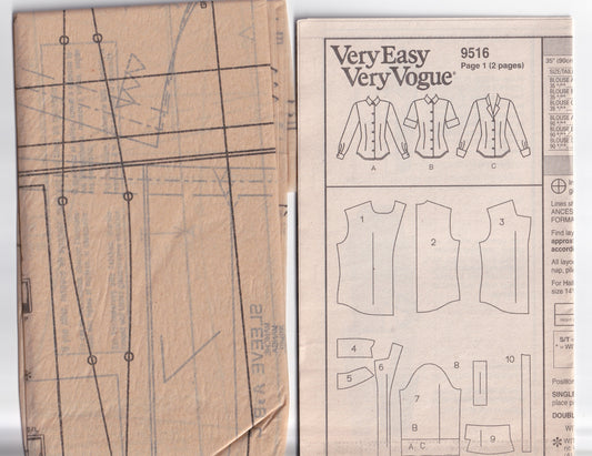 Vogue 9516 Womens Classic Blouses 1990s Vintage Sewing Pattern Size 14 - 18 UNCUT Factory Folded