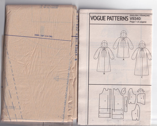 Very Easy Vogue 9340 Womens EASY Raglan Sleeved Hooded Coats Out Of Print Paper Sewing Pattern Size L - XXL UNCUT Factory Folded