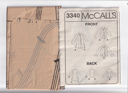 McCall's 3340 Womens Princess Cut Longline or Regular Length Shirts Out Of Print Paper Sewing Pattern Sizes 8 - 14 UNCUT Factory Folded