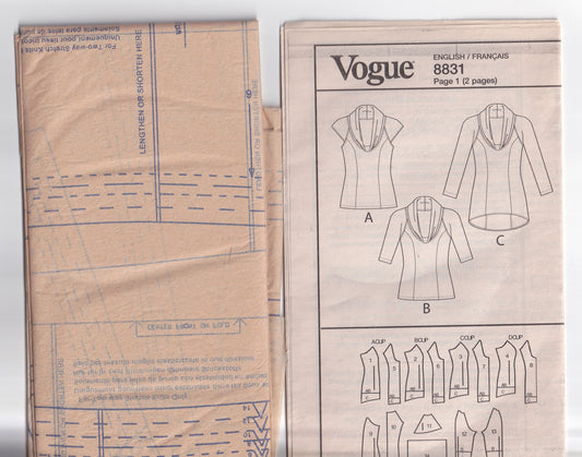Very Easy Vogue 8831 Womens CUSTOM FIT Stretch Knit Pullover Cowl Neck Top & Tunic Out Of Print Paper Sewing Pattern Sizes 6 - 14 UNCUT Factory Folded
