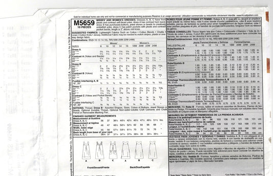 McCall's 5659 Womens Round Yoked Sundress with Pockets Out Of Print Sewing Pattern Size 18W - 24W UNCUT Factory Folded