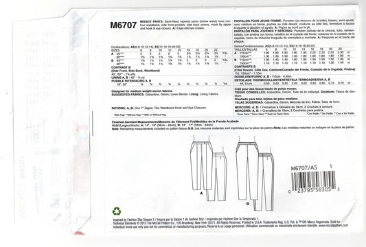 McCall's 6707 FASHION STAR Womens Hipster Pants Out Of Print Sewing Pattern Sizes 6 - 14 UNCUT Factory Folded