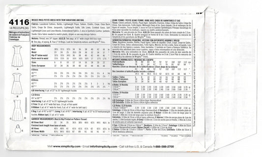 Simplicity 4116 Womens Flutter Sleeved Sundress & Tote Bag Out Of Print Sewing Pattern Size 6 - 14 UNCUT Factory Folded