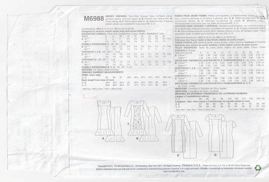 McCall's 6988 EASY Womens Panelled Colour Block Dress Out Of Print Sewing Pattern Sizes 6 - 14 UNCUT Factory Folded