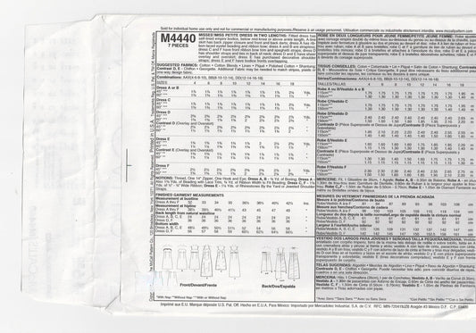 McCall's 4440 Womens Empire Waisted Sundress Out Of Print Sewing Pattern Size 8 - 14 UNCUT Factory Folded