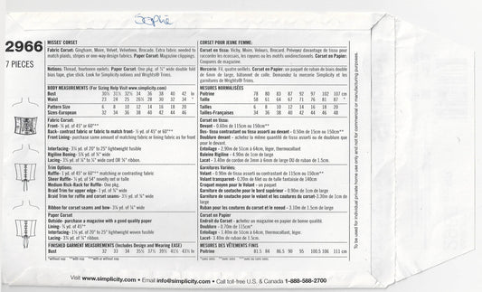 Simplicity 2966 Womens Corset Bustier Top Out Of Print Sewing Pattern Size 14 - 20 UNCUT Factory Folded