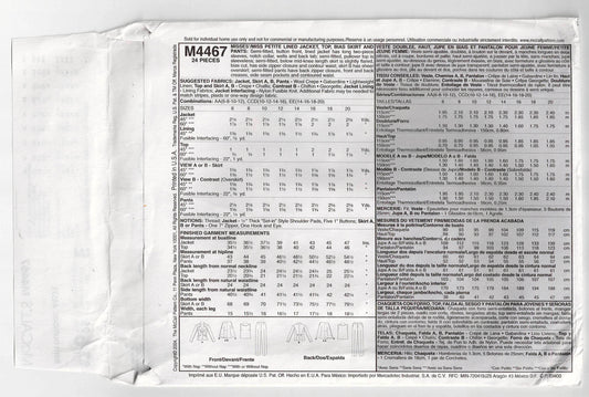 McCall's 4467 Womens Casual Non Stop Wardrobe Out Of Print Sewing Pattern Sizes 6 - 12 UNCUT Factory Folded