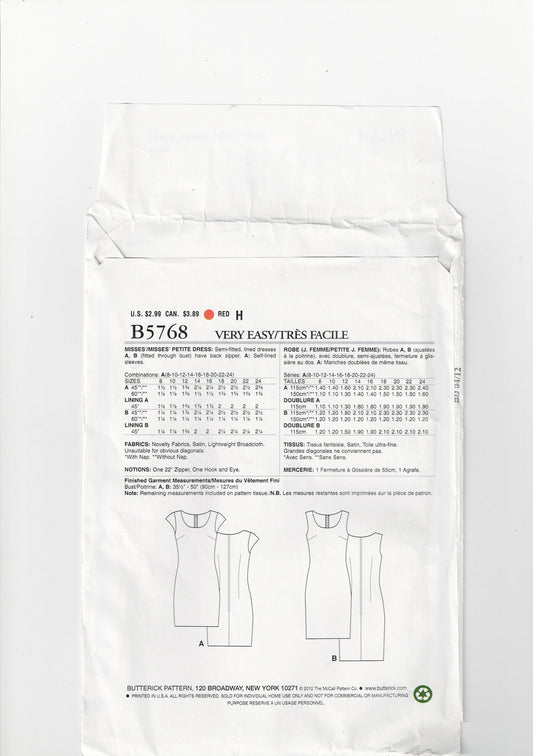 Butterick See & Sew 5768 EASY Womens Sheath Dress Out Of Print Sewing Pattern Size 8 - 24 UNCUT Factory Folded
