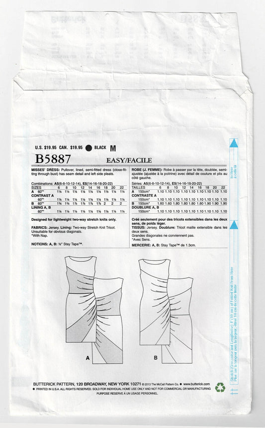 Butterick 5887 MUSE Womens Stretch Asymmetric Colour Blocked Dress Out Of Print Sewing Pattern Sizes 14 - 22 UNCUT Factory Folded