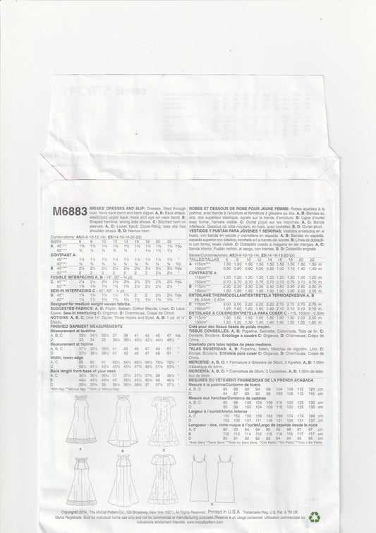 McCall's 6883 EASY Womens Dress & Slip Out Of Print Sewing Pattern Sizes 6 - 14 UNCUT Factory Folded