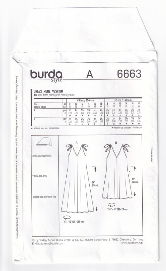 Patrón de costura para vestido de tienda de campaña con hombros anudados para mujer Burda Style 6663, tallas 8 a 18, sin cortar, doblado de fábrica
