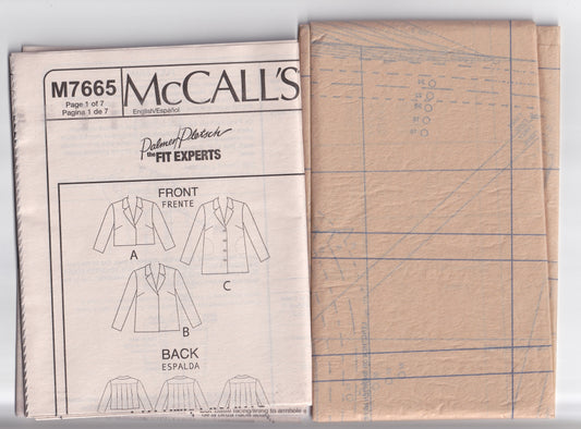 McCall's 7665 Womens PALMER PLETSCH Back Pleated Yoked Coat & Jacket Out Of Print Sewing Pattern Sizes 16 - 24 UNCUT Factory Folded