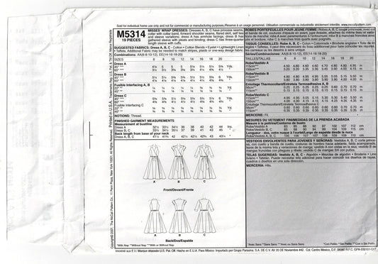 McCall's 5314 Womens Wrap Dresses with Circle Skirt Out Of Print Sewing Pattern Size 14 - 20 UNCUT Factory Folded