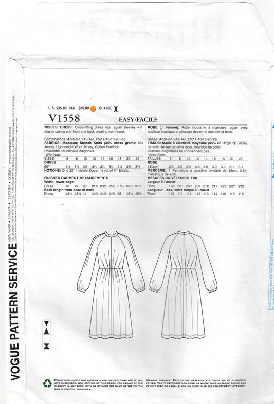 Vogue Designer Original 9329 MARCY TILTON Womens 2 Way Stretch Pullover Dress Out Of Print Sewing Pattern Size L - XXL UNCUT Factory Folded