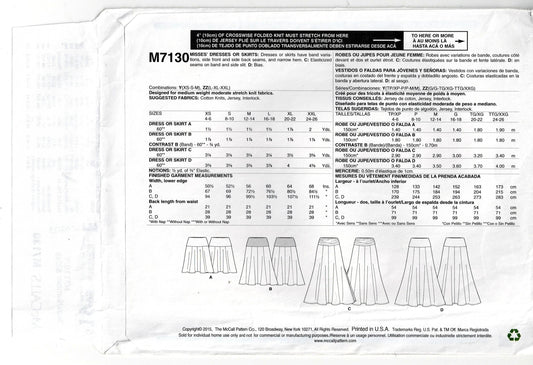Patrón de costura de McCall's M7130 para faldas o vestidos sin tirantes elásticos para mujer, tallas 4 a 14, sin cortar, doblado de fábrica