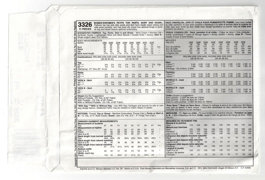 McCall's 3326 EASY Womens Casual Separates Wardrobe Out Of Print Sewing Pattern Size 18W - 24W UNCUT Factory Folded