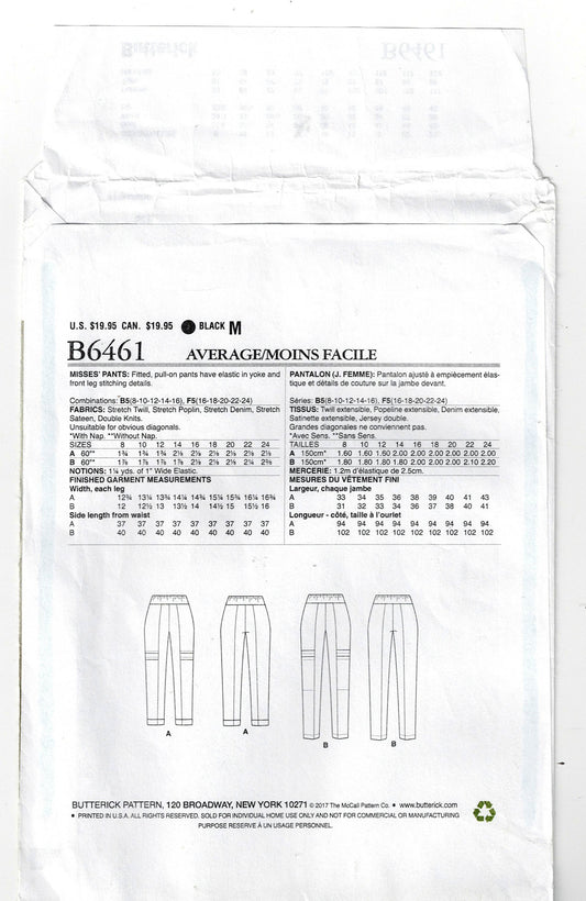 Patrón de costura de pantalón ajustado Butterick 6461 Katherine Tilton para mujer, agotado, talla 8-24, sin cortar, doblado de fábrica