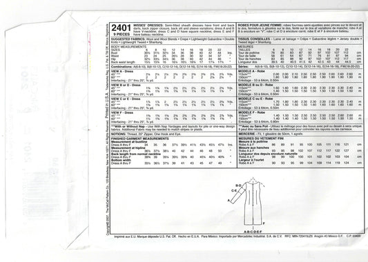 McCall's 2401 Womens EASY Dart Fitted Sheath Dress Out Of Print Sewing Pattern Sizes 12 - 16 UNCUT Factory Folded