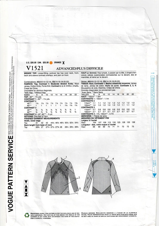 Vogue American Designer 1521 KOOS Womens Stretch Pullover Tops with Seam Detail Out Of Print Sewing Pattern Size 14 - 22 UNCUT Factory Folded