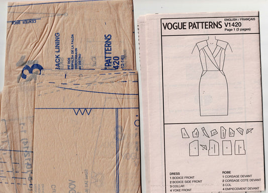 Vogue American Designer 1420 ANNE KLEIN Womens Lined Wrap Bodice Dress Out Of Print Sewing Pattern Size 6 - 14 UNCUT Factory Folded