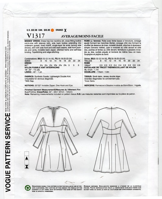 Vogue American Designer 1360 KAY UNGER NY Womens Stretch Panelled Lined Dress for Wool Or Ponte Knit Out Of Print Sewing Pattern Size 8 - 16 or 16 - 24 UNCUT Factory Folded