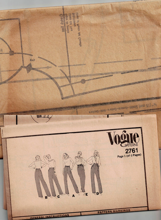 Vogue Basic Design 2761 Womens Straight Leg Pants in 5 Styles 1980s Vintage Sewing Pattern Size 10 Waist 25 Inches UNCUT Factory Folded