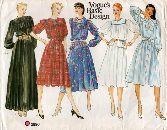 Patrón de costura de vestido y falda con mangas abullonadas para mujer Vogue Basic Design 2890, estilo vintage de los años 70, talla 8, busto 31,5 pulgadas