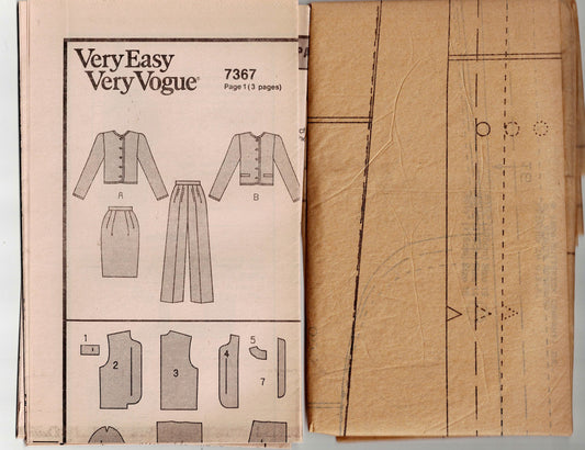Vogue Career 7367 Womens Jacket Skirt & Pants 1980s Vintage Sewing Pattern Size 12 - 16 UNCUT Factory Folded