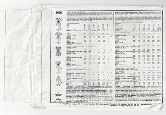 Patrón de costura vintage de los años 80 para vestido largo o estampado con borde y mangas abullonadas para mujer McCall's 9505, talla XS 6-8, sin cortar, doblado de fábrica
