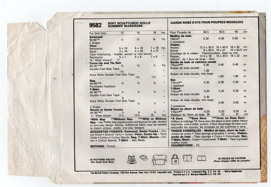 McCall's 9582 Blossom Babies Beach Outfit Ropa para muñecas de 12, 16 y 18 pulgadas Patrón de costura vintage de los años 80 SIN CORTAR Plegado de fábrica