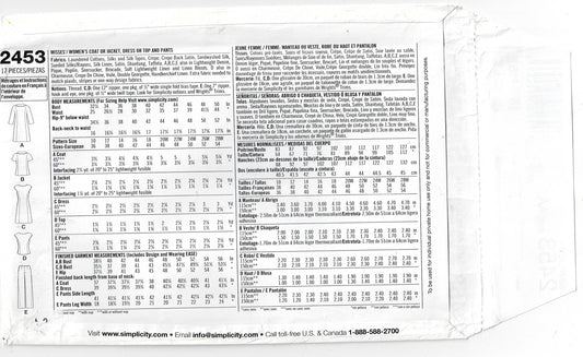 Patrón de costura Simplicity 2453 para mujer, con paneles, abrigo, chaqueta, top y pantalones, agotado, tallas 10 a 18, sin cortar, doblado de fábrica