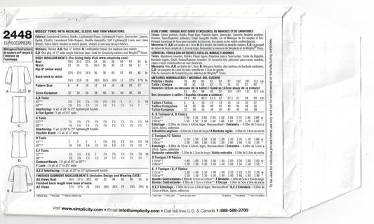 Patrón de costura de túnica estilo caftán para mujer Simplicity 2448, agotado, talla 6-14, sin cortar, doblado de fábrica