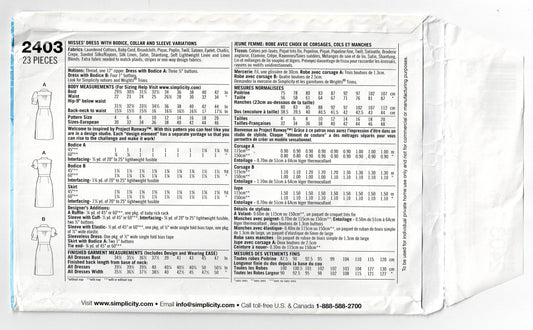 Patrón de costura agotado para vestido de mujer con mangas abullonadas PROJECT RUNWAY Simplicity 2403, tallas 12 a 20, sin cortar, doblado de fábrica