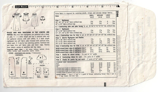 Simplicity 2566 Womens Yoked Babydoll & Muu Muu Nightgown & Panties 1950s Vintage Sewing Pattern Size SMALL Bust 31 - 32 inches UNUSED Factory Folded