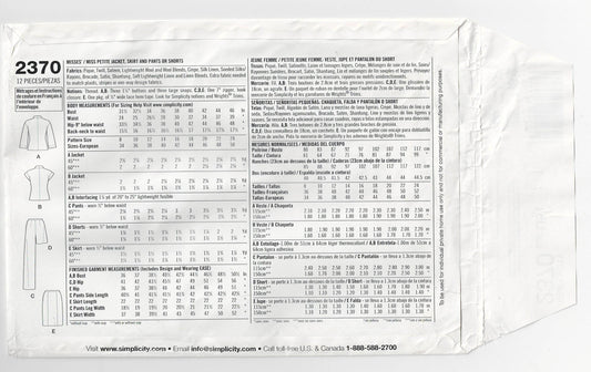 Patrón de costura agotado para chaqueta, falda, pantalones y pantalones cortos de la colección Simplicity 2370 THREADS, para mujer, talla 16-24, sin cortar, doblado de fábrica