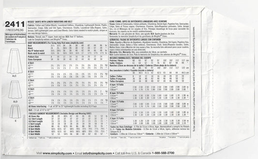 Patrón de costura de faldas con paneles Simplicity 2411 para mujer, sin cortar, dobladas de fábrica, talla 8-16