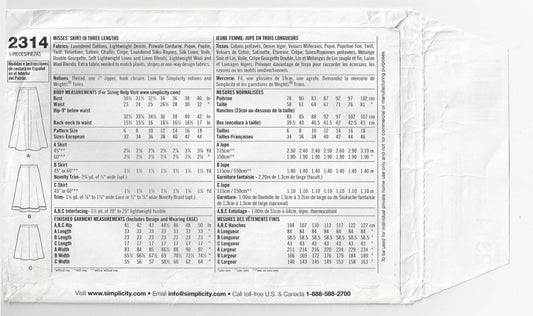 Patrón de costura de faldas para principiantes para mujer Simplicity 2314, talla 6-18, sin cortar, dobladas de fábrica