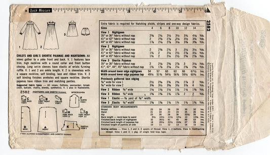 Patrón de costura vintage de los años 50 para pijama y camisón corto para niñas Simplicity 2582, talla 10