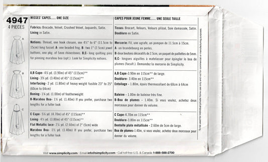 Patrón de costura agotado para capas con capucha o cuello para mujer Simplicity 4947 VINTAGE CLOSET, talla única