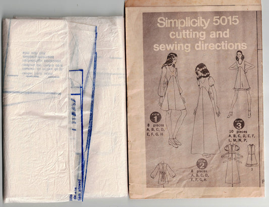 Simplicity 5012 Womens Square Neck Tucked Bodice Maxi Dress 1970s Vintage Sewing Pattern Size 12 Bust 34 inches