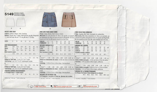 Simplicity 5149 Womens Mini Skirts Out Of Print Sewing Pattern Size 6 - 16 UNCUT Factory Folded