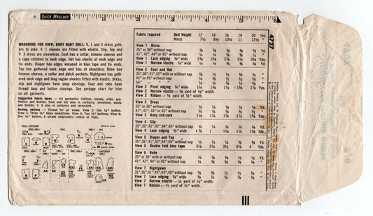 Patrón de costura vintage de los años 60 Simplicity 4727 para guardarropa retro de muñecas de 14 pulgadas